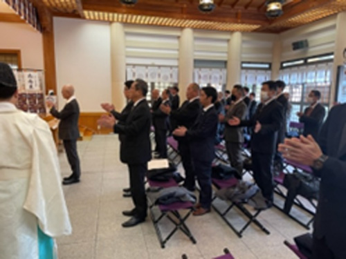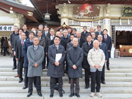当組合では、例年開催している「安全祈願祭」を「新年互例会」に先立ち、令和8年1月22日(木)午後4時30分〜広島市中区の「広島護国神社」において、組合員32名が参加して行われました。