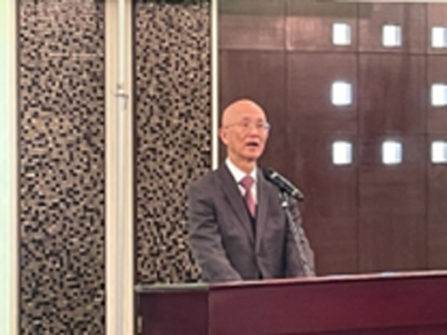 互例会の終わりに丸岡優介副理事長が挨拶に立ち、今年一年の組合員・家族の安全と、国の積極財政による会社の興隆を祈念し、一本締めで閉会となりました。