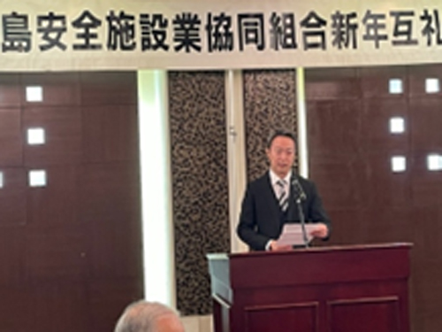 また、「安全祈願祭」の後、18時から中区の「メルパルク広島」を会場に、組合員32社から総勢47名が参加し、「新年互例会」が盛会裏に開催されました。